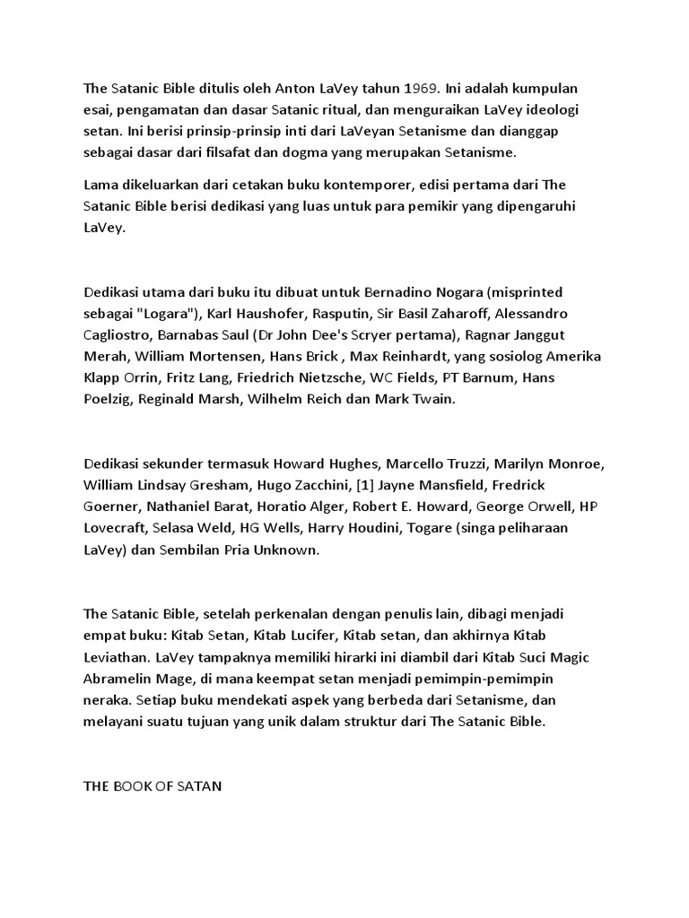 Satanic Bible Pdf Bahasa Indonesia. 4445 Though at some points LaVey refers to Satan as a physical being this is intended to encourage the Satanists rational self-interest73 Science. In the ritual names of.